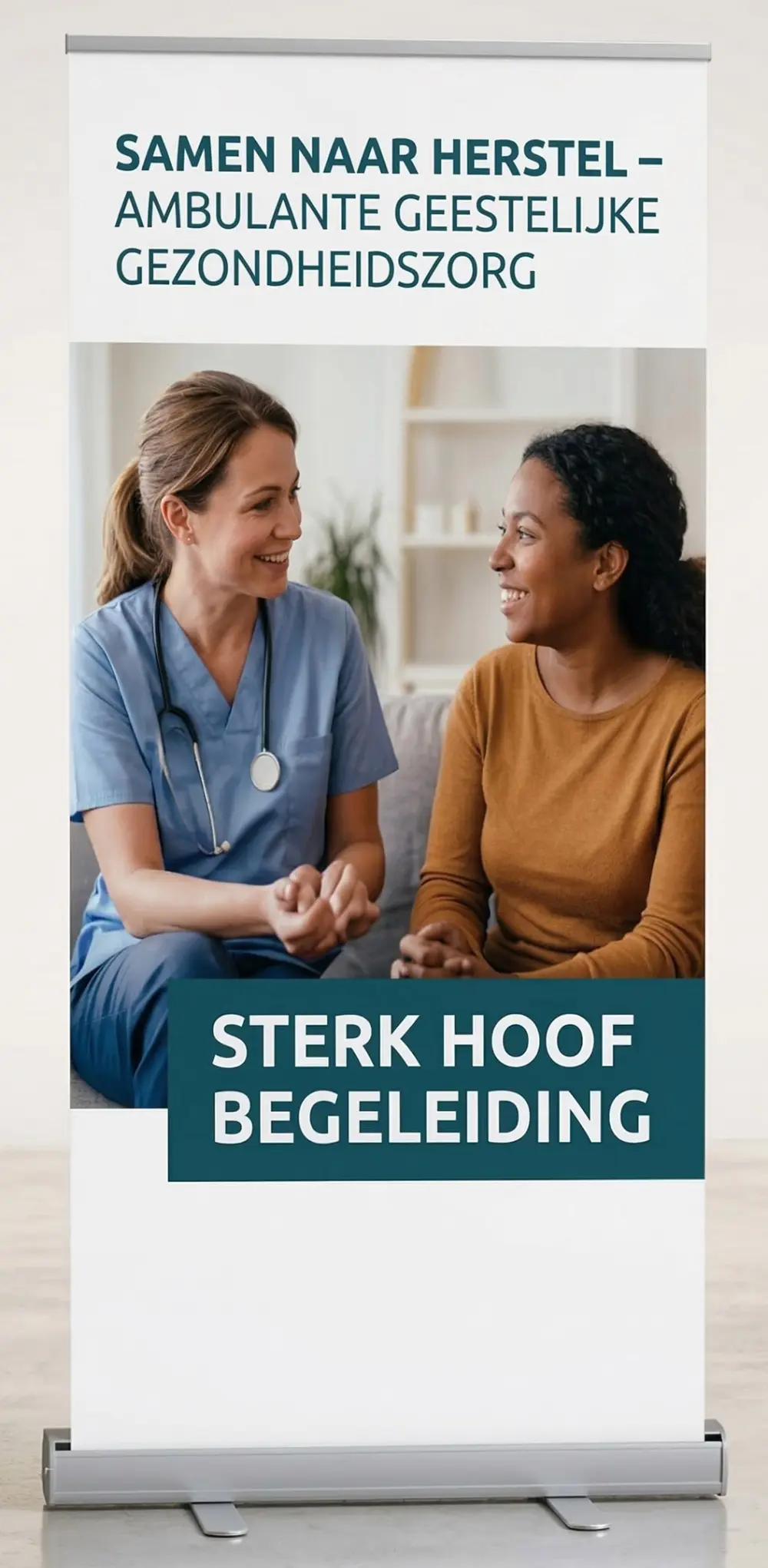 De A2-poster speelde een belangrijke rol in het trekken van de aandacht. Door het grotere formaat en een opvallend ontwerp was onze stand al van een afstand goed zichtbaar. Bezoekers zagen in één oogopslag waar onze instelling voor staat, wat vaak de aanleiding was om even bij ons langs te komen.